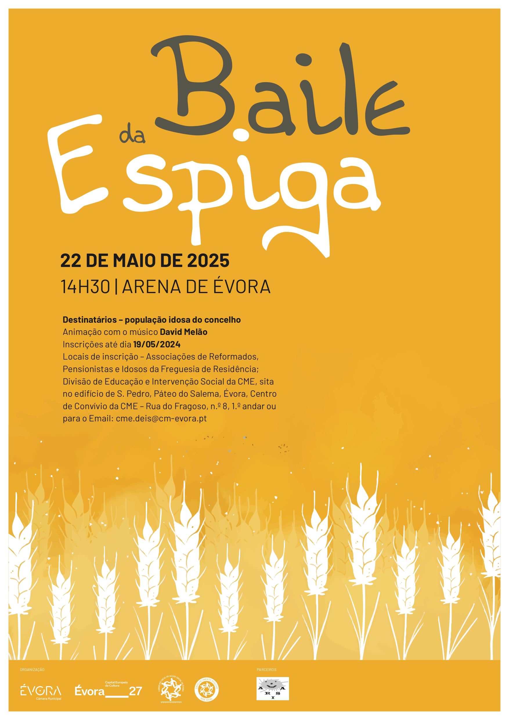 Locais de inscrição – Associações de Reformados, Pensionistas e Idosos da Freguesia de Residência; Divisão de Educação e Intervenção Social da CME, sita no edifício de S. Pedro, Páteo do Salema, Évora; Centro de Convívio da CME – Rua do Fragoso, n.º 8, 1.º andar ou para o email: cme.deis@cm-evora.pt.