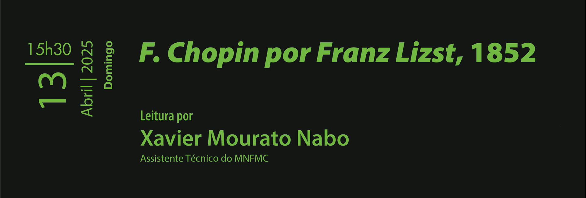 Nele «será abordada a obra F. Chopin por Franz Lizst, publicada em 1852. Esta obra não é uma biografia de Chopin – grande artista musical da época romântica – é antes uma homenagem que Franz Lizst – outro insigne músico da época – presta ao seu amigo Chopin dois anos após a sua prematura morte.