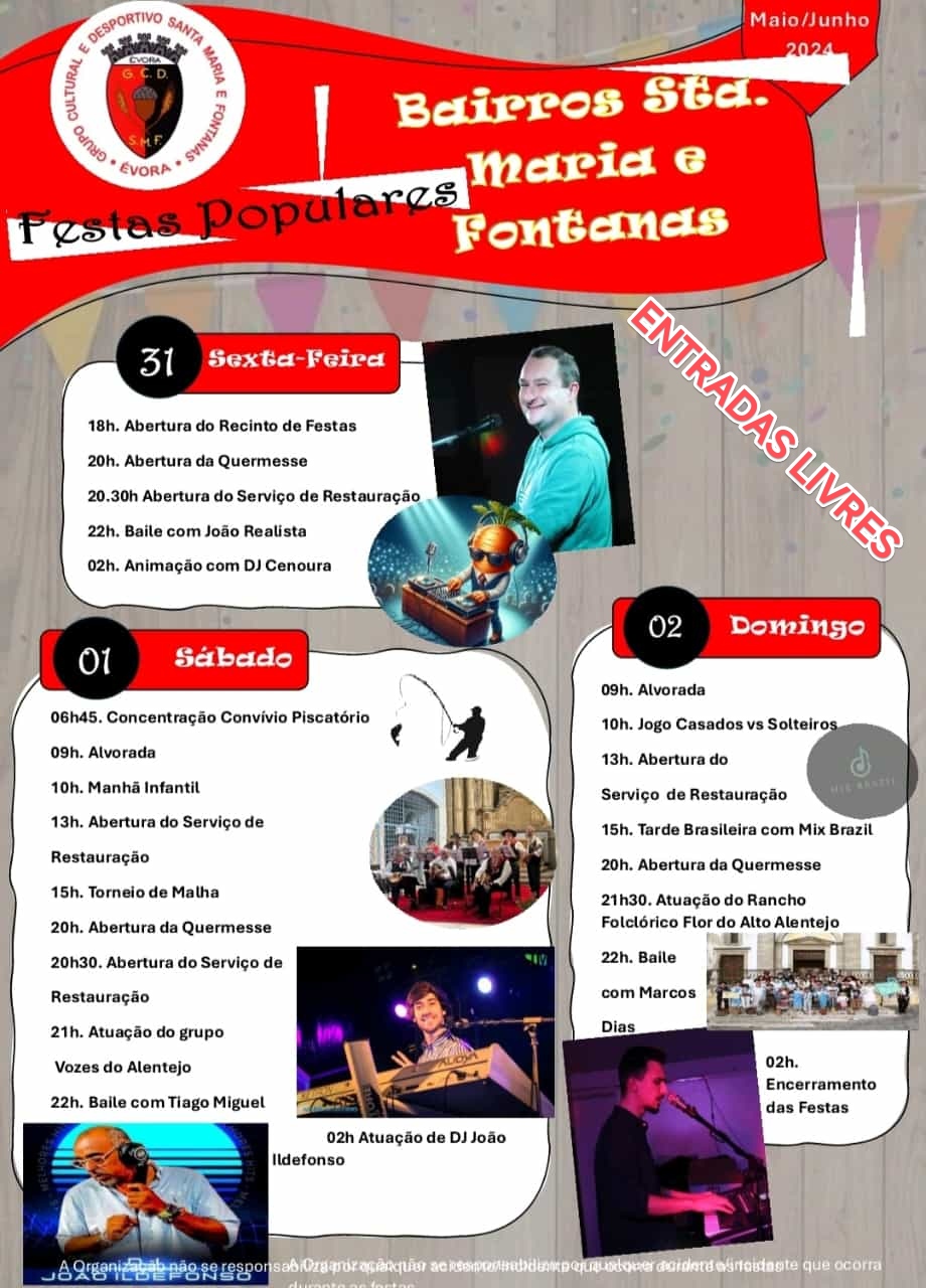 Muito anos depois estão de volta as festas Populares dos bairros Santa Maria e Fontanas organizadas por O GRUPO CULTURAL E DESPORTIVO SANTA MARIA E FONTANAS.