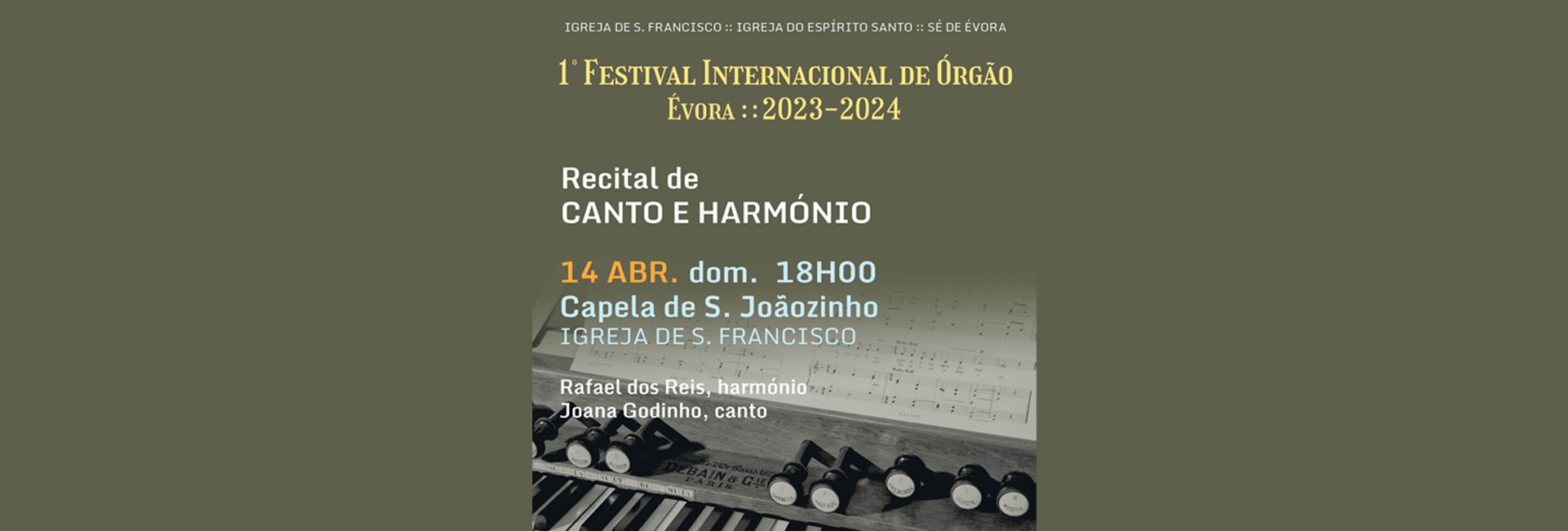 Neste recital, Rafael dos Reis e Joana Goddinho interpretam um repertório para harmónio e canto da segunda metade do século XIX e início do século XX, com obras de autores franceses ou portugueses influenciados pela cultura musical francesa.