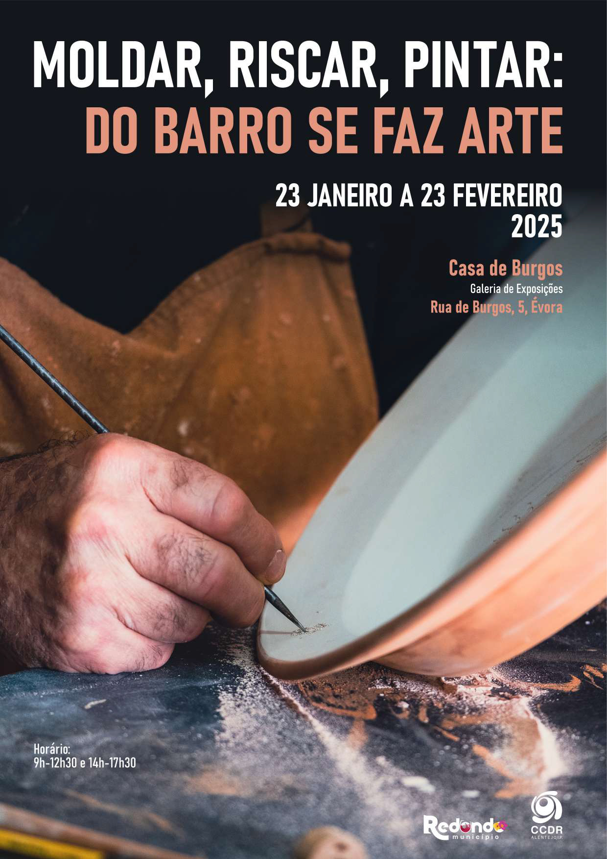 Estará patente, de 23 de janeiro a 23 de fevereiro de 2025, na Galeria da Casa de Burgos, em Évora, a exposição de fotografias Moldar, Riscar, Pintar: do barro se faz arte, organizada pela Câmara Municipal de Redondo, em colaboração com a CCDR Alentejo, I.P. – Unidade de Cultura.