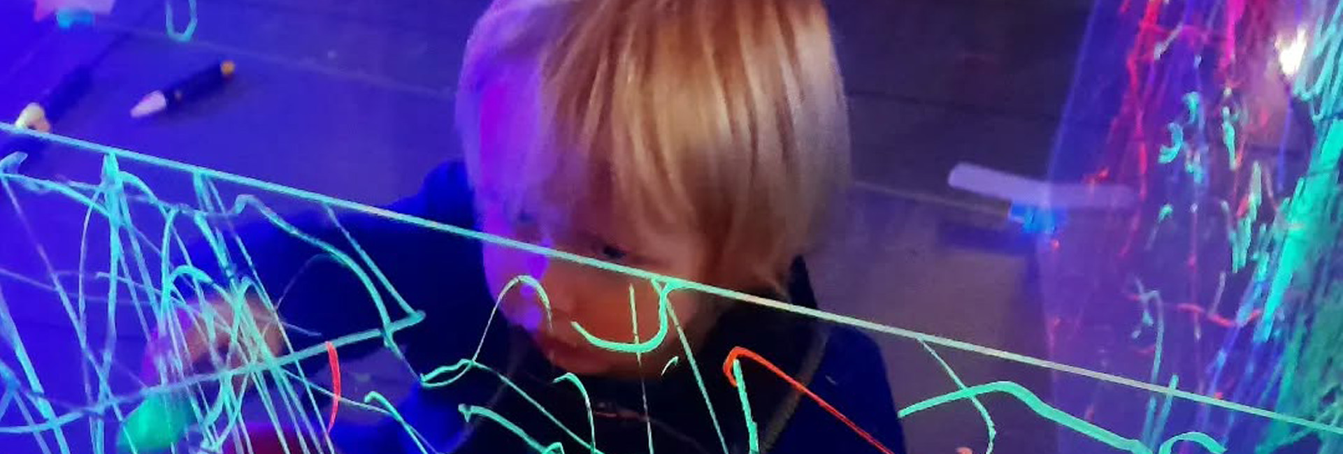 3 – Momento artístico em que as crianças pintam um cubo acrílico com marcadores uv.