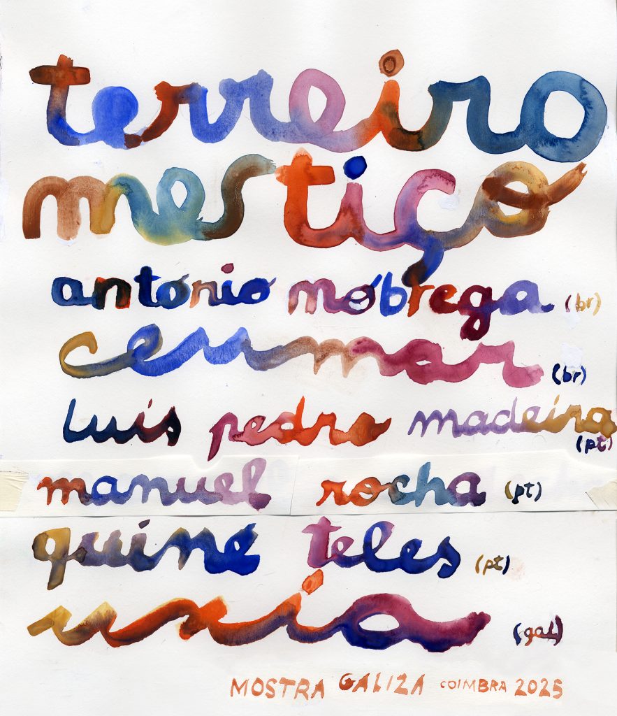 Concerto com Uxía (GAL), António Nóbrega (BR), Ceumar (BR), Luís Pedro Madeira (PT), Manuel Rocha (PT) e Quiné Teles (PT) Espectáculo construído na sequência de uma residência de criação artística realizada em Coimbra, no âmbito da Mostra de Teatro Galego. O alinhamento cruzará músicas tradicionais do Brasil, da Galiza e de Portugal e peças emblemáticas dos reportórios dos artistas envolvidos, todos com largas carreiras na recolha e interpretação dos cancioneiros tradicionais dos seus países.