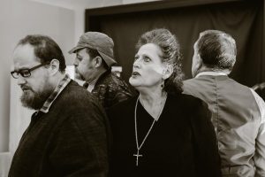 É o próprio Lobo Antunes que diz: “Não consigo conceber uma história onde as personagens não tenham carne”. Por isso é que as suas criaturas romanescas se encarnam tão naturalmente sobre um palco. Hoje, para falar da Revolução quarenta anos depois e na situação dramática em que Portugal se encontra, pareceu-me imperativo convocar a linguagem e as imagens interiores deste imenso escritor, sabemos que apenas nos apoiando em poetas rebeldes podemos dar conta dum mundo que mete medo. António Lobo Antunes, ao dirigir o seu olhar para o passado, recusa-se a contribuir para a edificação duma lenda dourada do 25 de Abril. As personagens que cria nos romances que colocam a Revolução como tela de fundo não são nenhuns heróis, mas pessoas comuns, cheias de contradições, que levam uma vida anónima nas margens dos acontecimentos históricos. O espetáculo propõe os relatos cruzados de diferentes personagens: um operário carregador de mudanças, um empregado de escritório militante maoista, uma camponesa explorada numa Quinta, uma burguesa caridosa e um dono de empresas. Cada um recorda o seu 25 de Abril e conta o que sucedeu com ele. Desta confrontação nascem, por certo, perguntas inevitáveis com o andar do tempo e à luz da fervura que sacode o país atualmente.