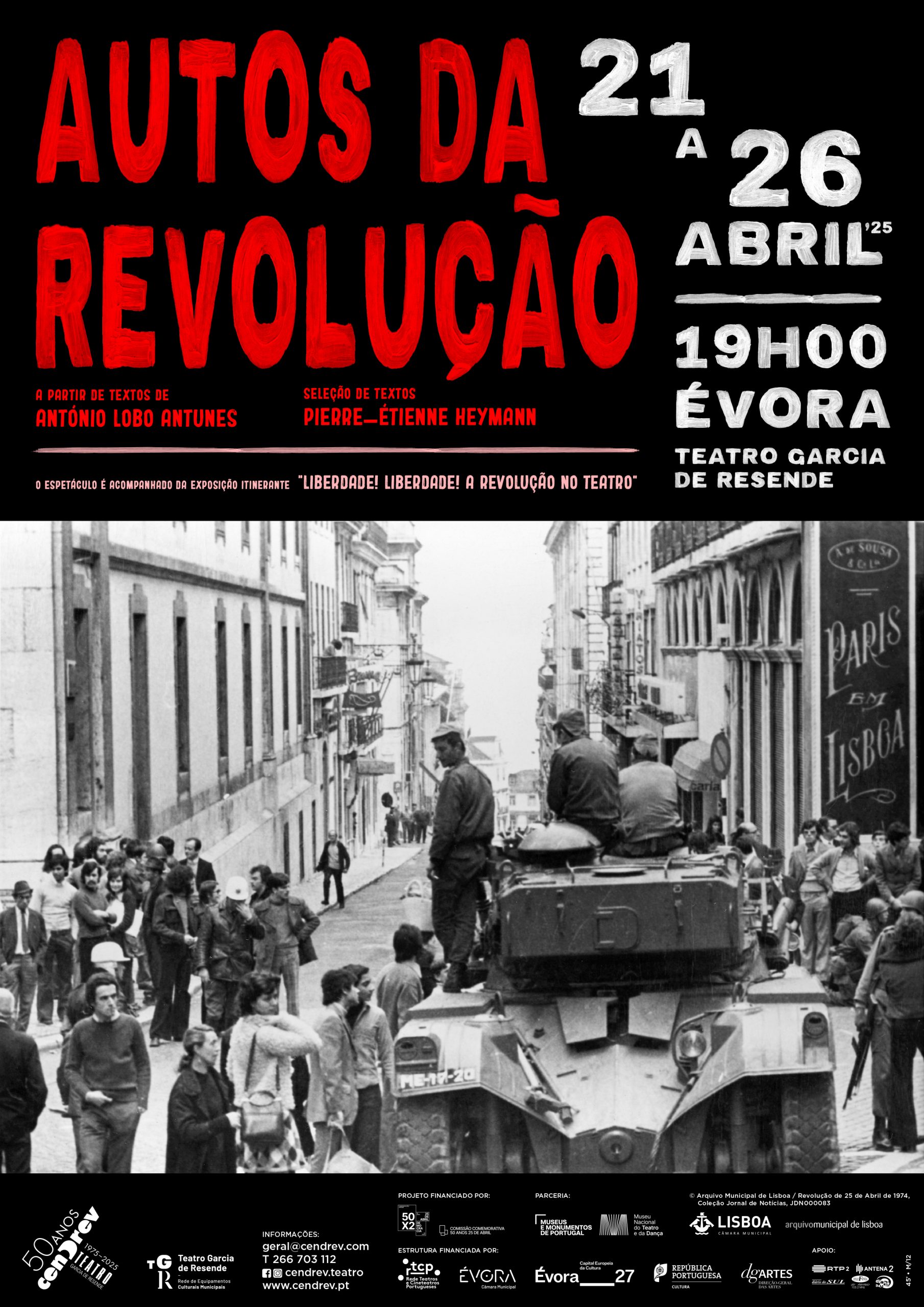 Como é sabido, o projeto teatral criado em Évora em janeiro de 1975 é, naturalmente, filho legítimo da revolução portuguesa. Daí que, quando o Ministério da Cultura nos lançou o desafio para integrar a programação das celebrações dos cinquenta anos do 25 de Abril, surgiu de imediato a ideia de voltar, mais uma vez, aos textos de António Lobo Antunes. Estes tinham resultado já num primeiro espetáculo em 2004 e numa segunda abordagem, em 2014, numa parceria do CENDREV com a ACTA – Companhia de Teatro do Algarve, ambos os projetos com dramaturgia e direção do nosso amigo Pierre-Étienne Heymann – homem de teatro, profundamente conhecedor da obra deste autor que se debruçou sobre a revolução portuguesa em várias das suas obras.