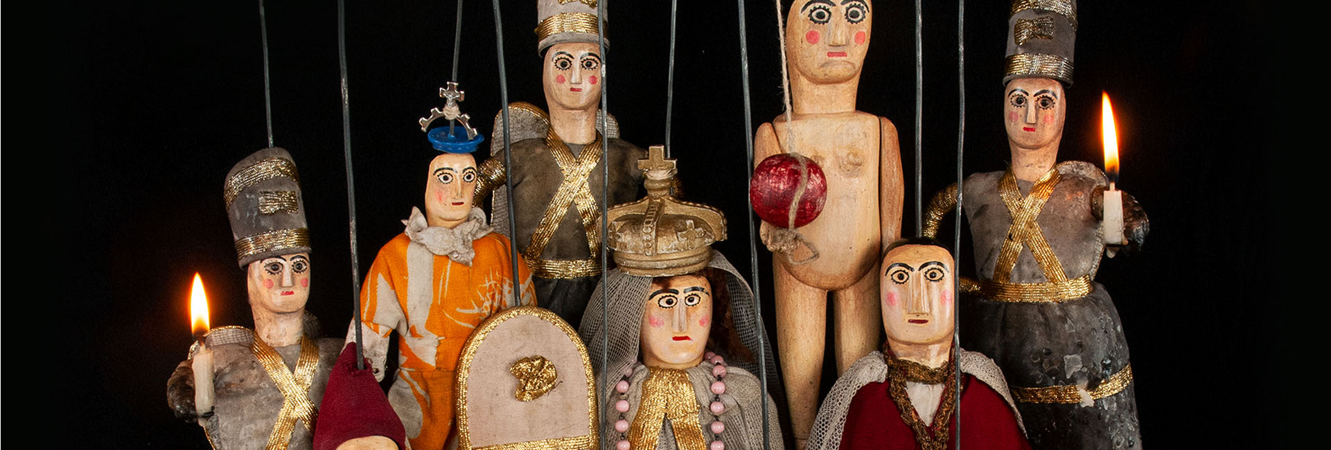 O essencial dos meios utilizados é composto por um lugar de representação chamado retábulo, construído em madeira e tecidos floridos, reproduzindo um palco tradicional em miniatura com pano de boca, cenários pintados em papelão e iluminação própria (candeia de azeite); os Bonecos são realizados em madeira e cortiça, medem entre 20 e 40 centímetros de altura e são vestidos com um guarda-roupa que permite, como no teatro naturalista, identificar as personagens da fábula contada. A música (guitarra portuguesa) e as cantigas são executadas ao vivo. Os textos, transmitidos oralmente, resultam de uma fusão entre a cultura popular e uma escrita erudita.