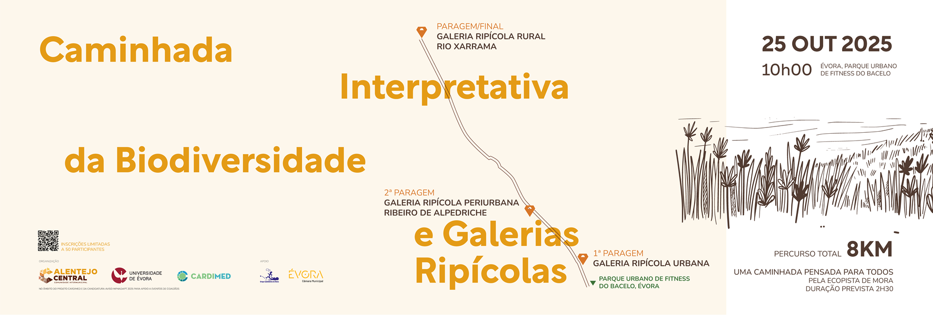 No próximo dia 25 de outubro às 10h00, a Comunidade Intermunicipal do Alentejo Central (CIMAC) e Universidade de Évora (UE) organizam uma caminhada interpretativa da biodiversidade e galerias ripícolas na Ecopista de Évora, um evento dedicado aos cidadãos e ciência cidadã que se enquadra no projeto ‘CARDIMED – Adaptação Climática e Resiliência Demonstradas na Região Mediterrânica’, onde a parceria entre CIMAC e UE levarão a cabo a reabilitação de um troço de 10km de galeria ripícola.