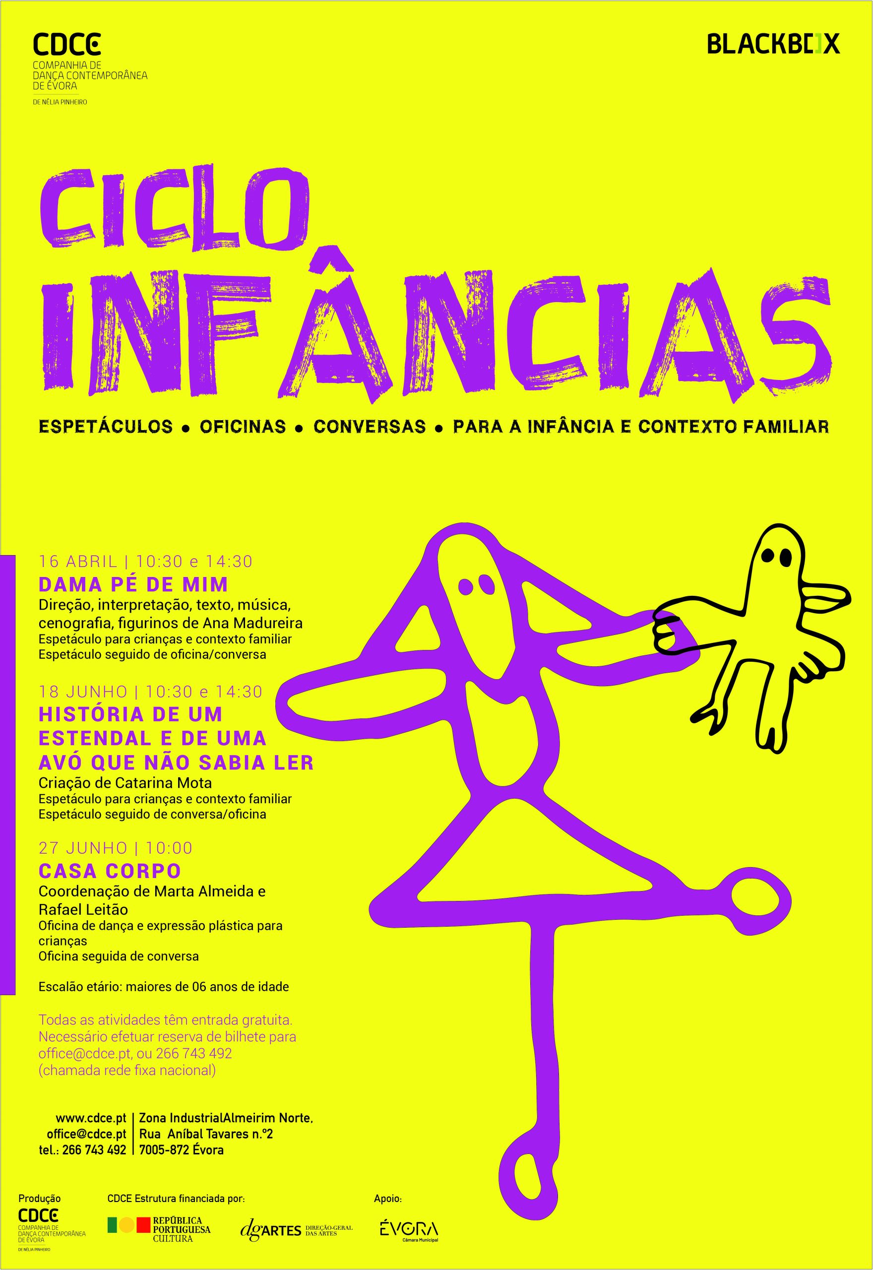 No âmbito da programação de 2024 da Black Box, entre 23 de abril e 18 de junho realiza-se o Ciclo Infâncias, um ciclo caraterizado pela apresentação de espetáculos, realização de oficinas e conversas entre artistas e público.