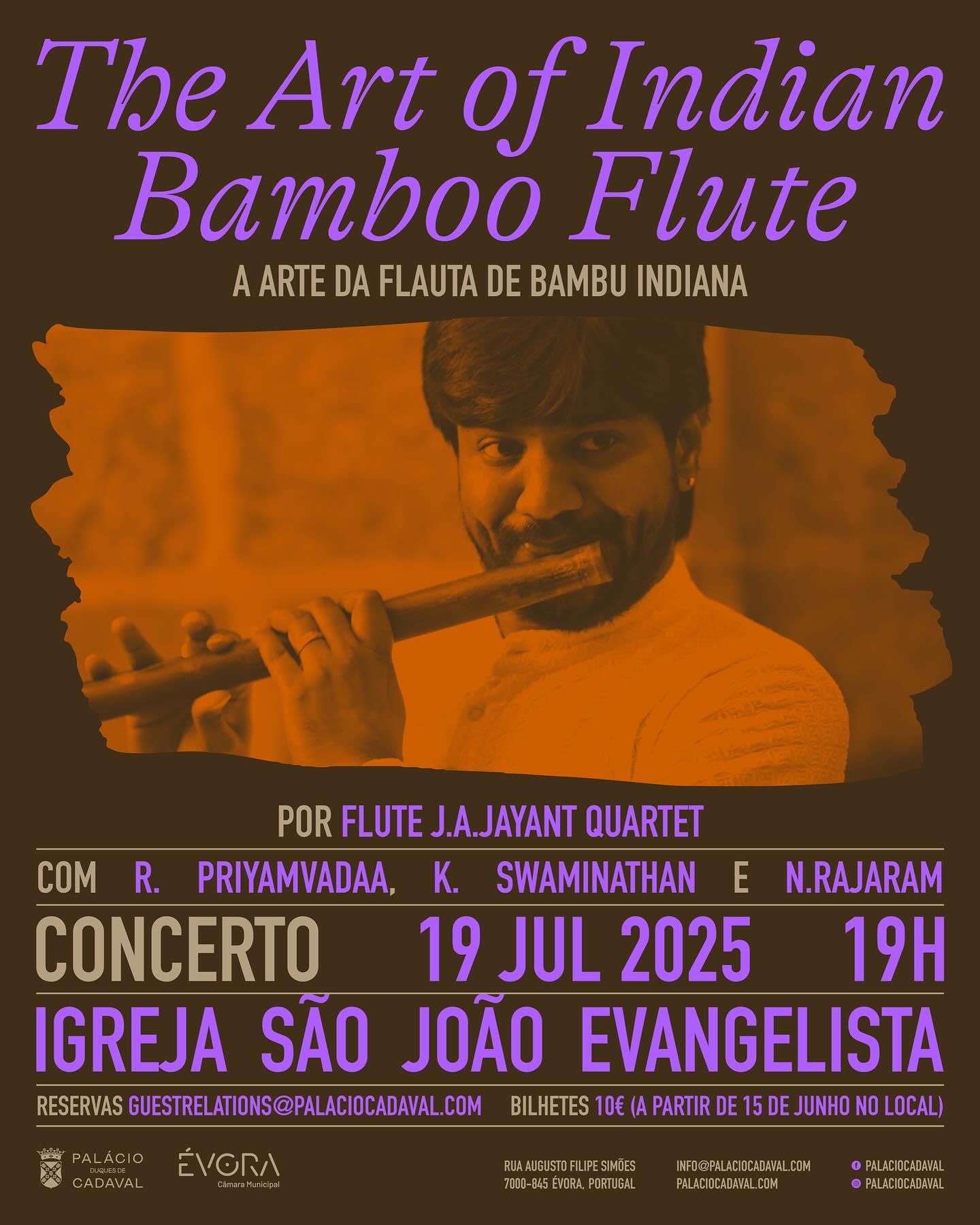 J.A.Jayant, o maior virtuoso da flauta de bambu da sua geração, juntamente com o seu fantástico grupo de músicos, levá-lo-á numa viagem por várias “Ragas” e melodias do Sul da Índia, representando vários estados de espírito. Com um domínio excecional do seu instrumento e um timbre de flauta impressionante, Jayant apresentará um recital instrumental carnático com padrões rítmicos intrincados, cânticos vocais e lançará um feitiço meditativo com as suas flautas de baixo.