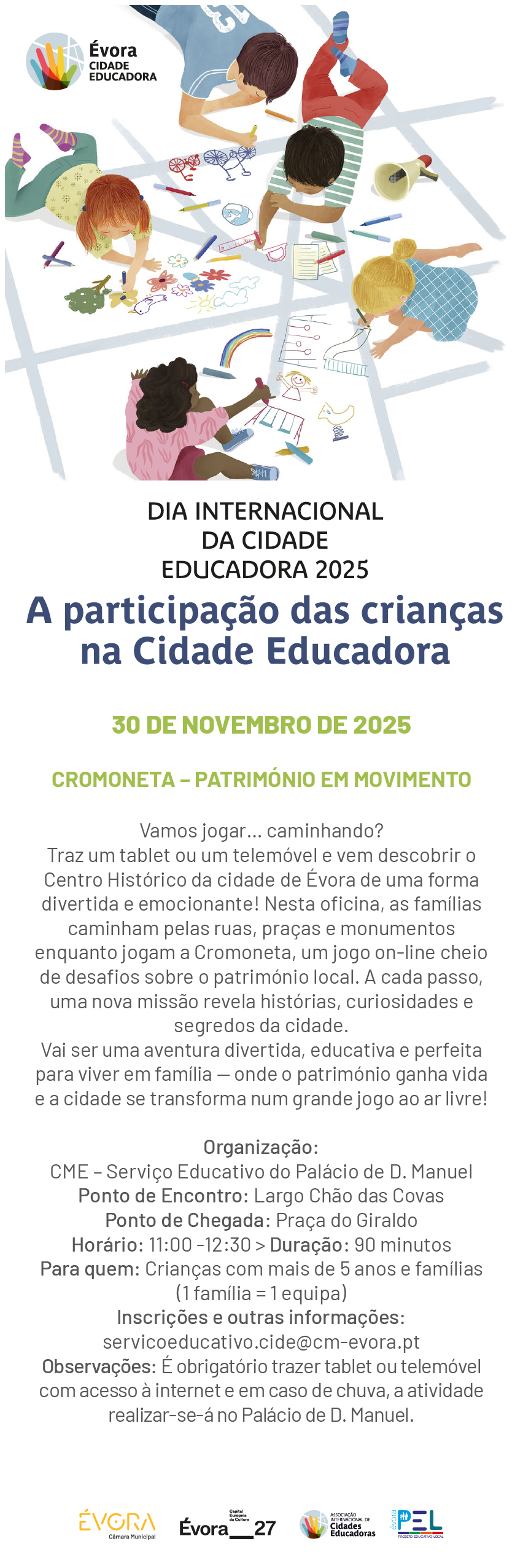 Inscrições e outras informações: servicoeducativo.cide@cm-evora.pt