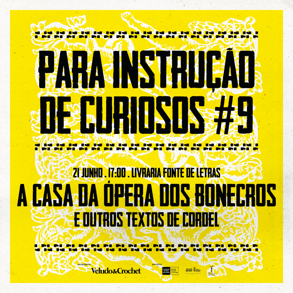 Para instrução de curiosos anda agora pela cidade, propondo a leitura de textos de cordel e acolhendo as conversas que em cada sessão surjam. A Livraria Fonte de Letras acolhe esta primeira etapa, com um texto pouco conhecido de José Daniel Rodrigues da Costa, «A casa da ópera dos bonecros». Que bonecros são estes? E de que casa se trata? Venha descobrir connosco.