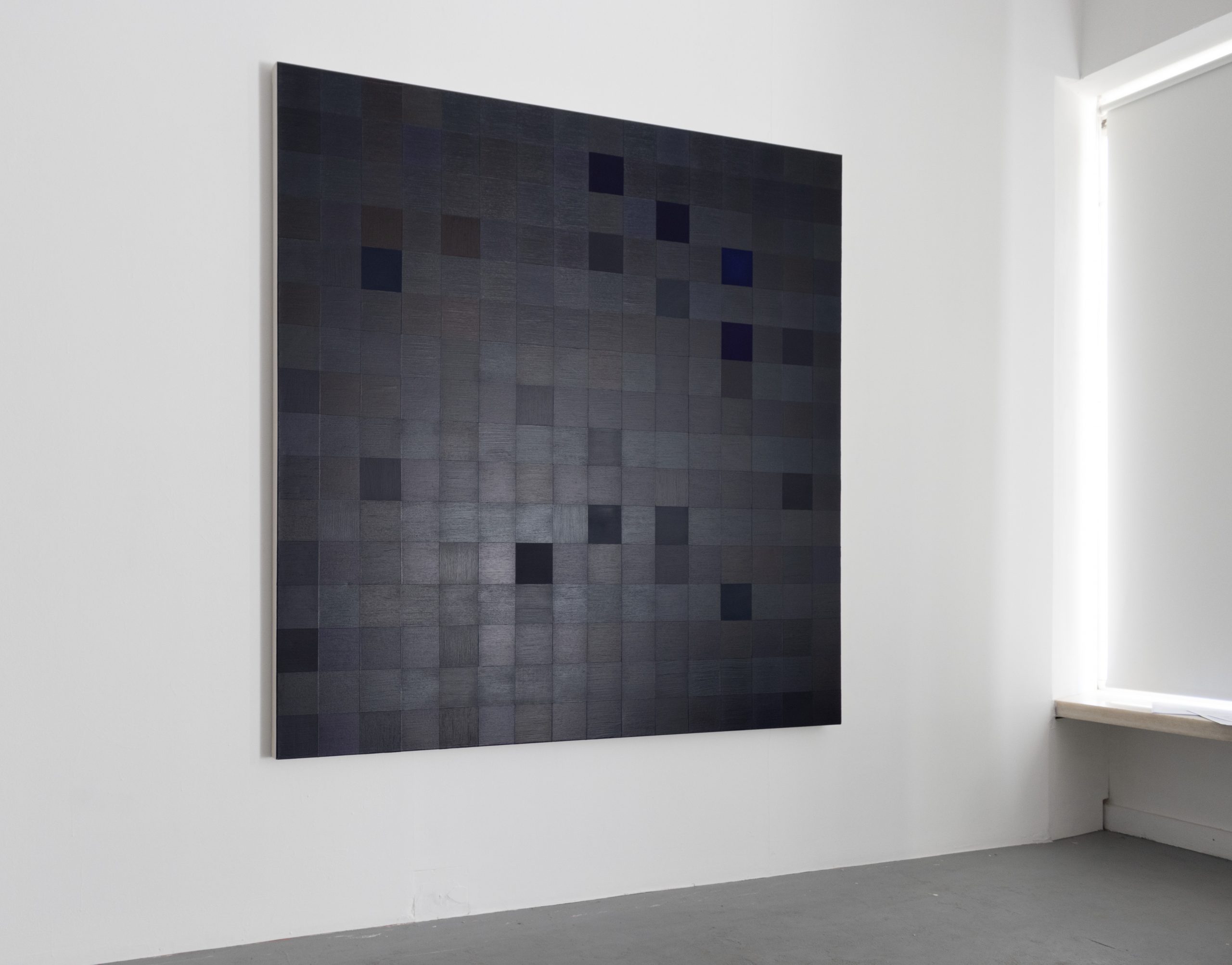 O fascínio pelas geometrias e a forma das cores remete-nos para a infância de Diana Cerezino. Aliás, ilustra um capítulo de todos nós, mas para a artista é mais do que pessoal ou parcial, é o caminho de volta a casa. O processo de Cerezino é metódico e estruturado, como um exercício subjetivo de atribuição de um elemento a uma cor. O resultado da composição são imagens que lembram uma realidade que não sendo virtual, transporta-nos para uma linguagem abstrata de pixéis. A cada quadrado um pigmento, uma tonalidade, uma vibração, um brilho. A cada cor ou variação um quadrado. Diana Cerezino apresenta na Plato um conjunto de pinturas que exploram a tridimensionalidade da figura quadrada através