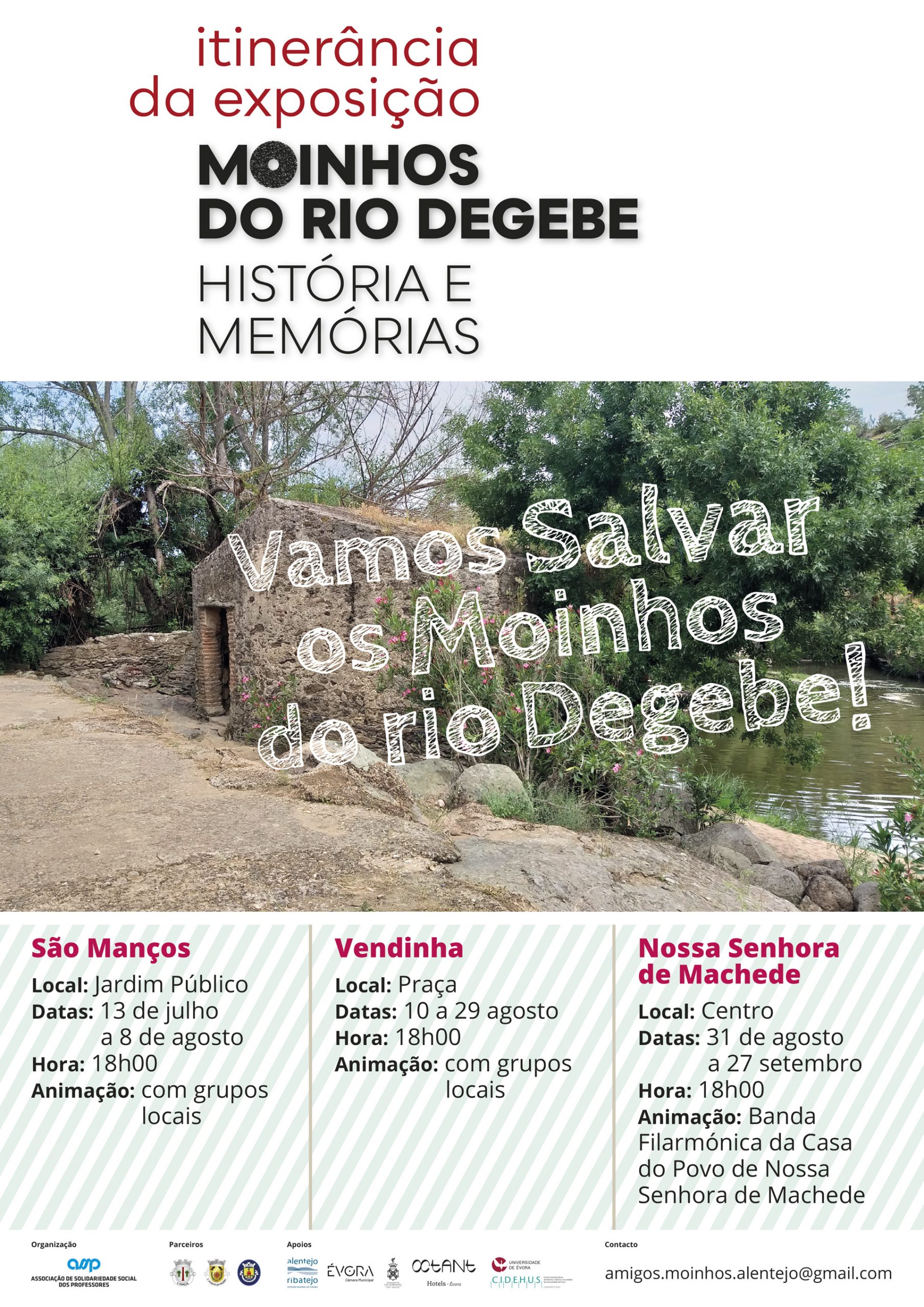 Enquadrada no Projeto “Vamos Salvar os Moinhos do Rio Degebe” a Itinerância da Exposição “ Os Moinhos do Rio Degebe – História e Memórias” às povoações de S. Manços, Vendinha, Nossa Senhora de Machede, pretende sensibilizar para a recuperação deste património, dando-lhe novas valências de carater cultural e turístico.