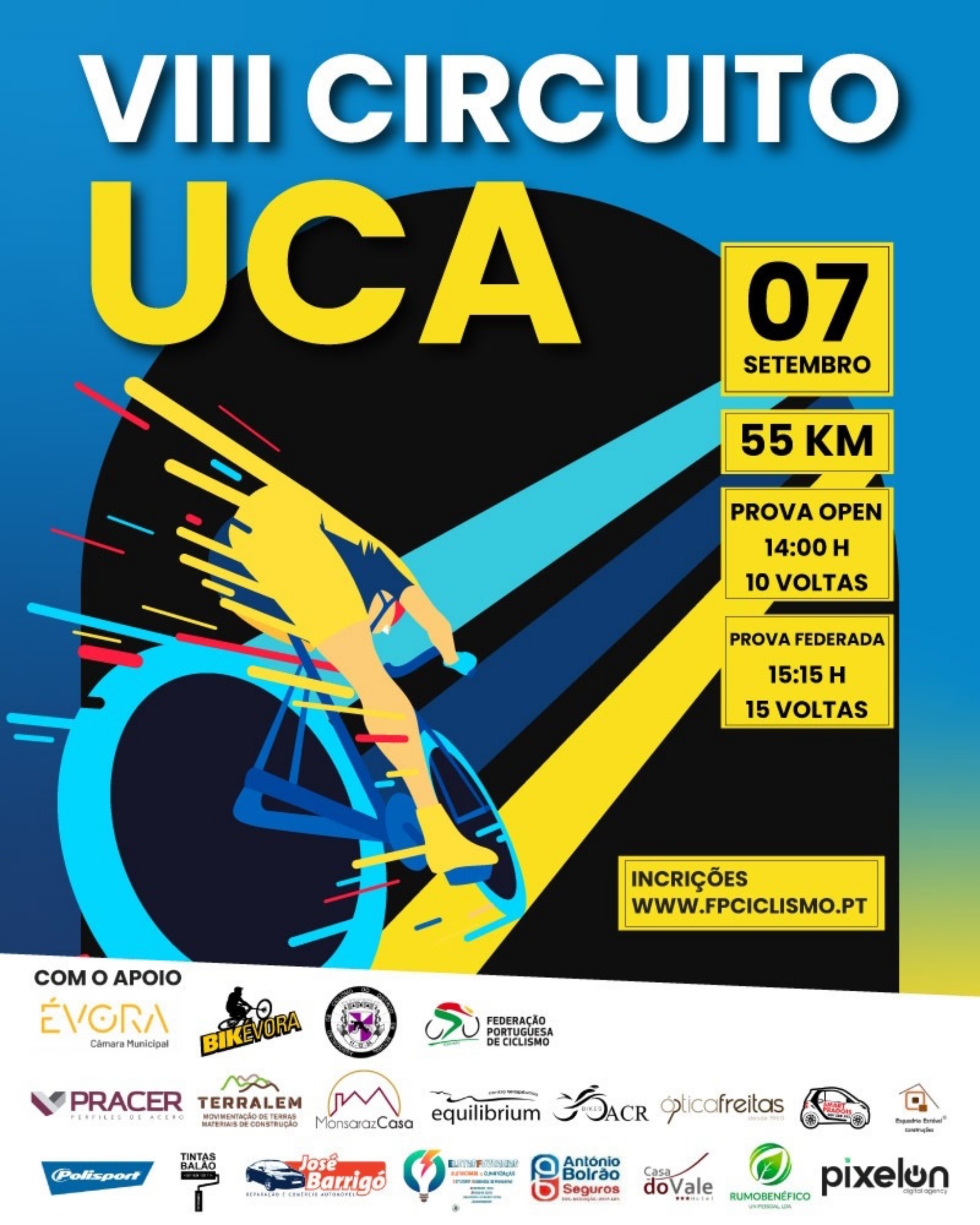 Inscrições: https://www.fpciclismo.pt/prova-inscrever/8-circuito-ucabikevora-inscrever