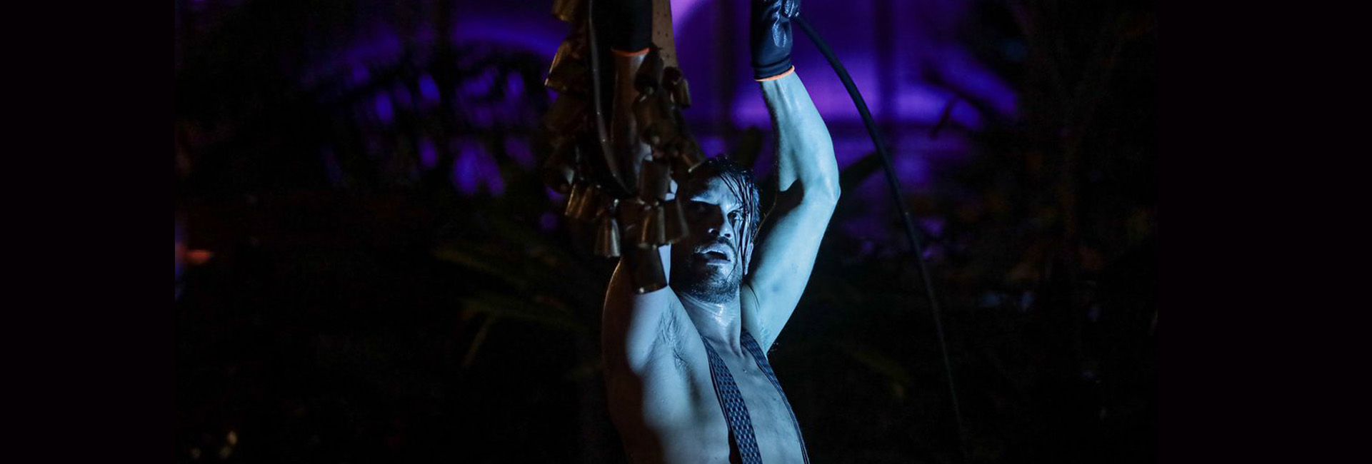Uma instalação e performance tendo como ponto de partida o potencial simbólico, sonoro e coreográfico dos chocalhos.