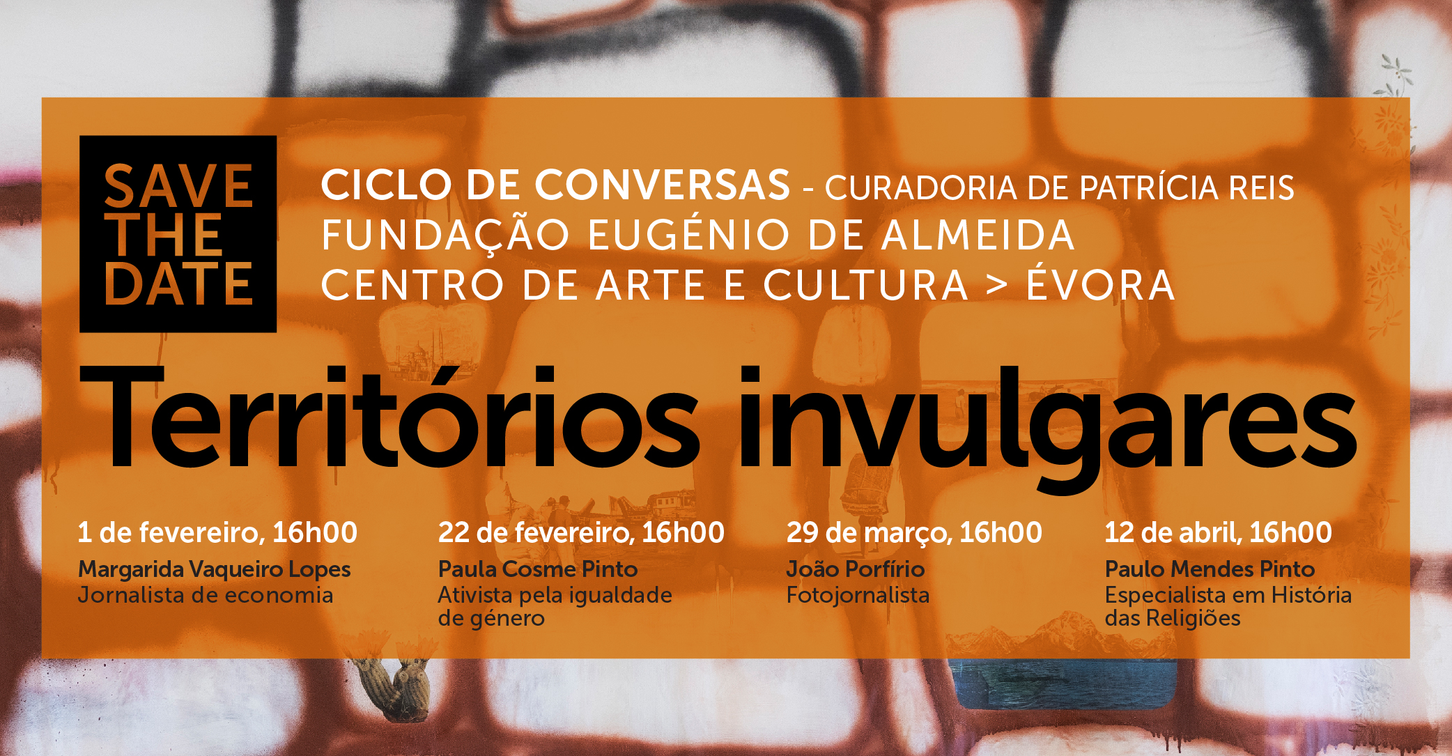 Neste ciclo de quatro conversas, a escritora e jornalista Patrícia Reis desafia quatro convidados para uma reflexão partilhada em torno de questões periféricas ao conceito que inspira a programação expositiva do Centro de Arte e Cultura, em 2025: Território(s). Ao longo das sessões, iremos refletir sobre diferentes áreas de intervenção na sociedade – economia, igualdade de género, fotojornalismo, espiritualidade –, e como nos inscrevemos nelas consciente ou inconscientemente.