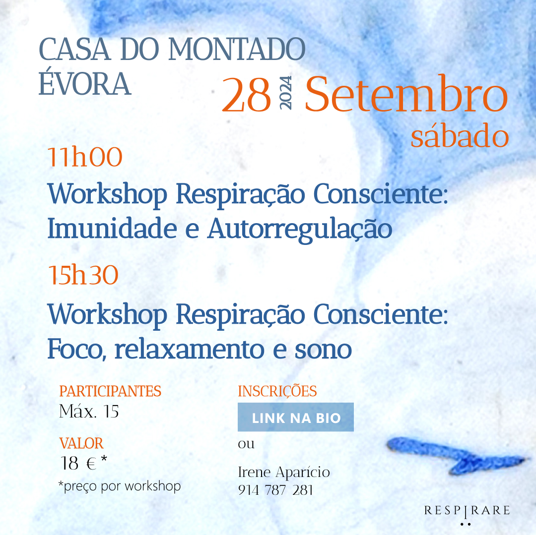 Dia 28 de Setembro a Casa do Montado traz-nos dois Workshops de Respiração Consciente: