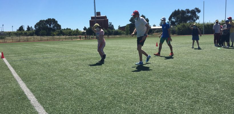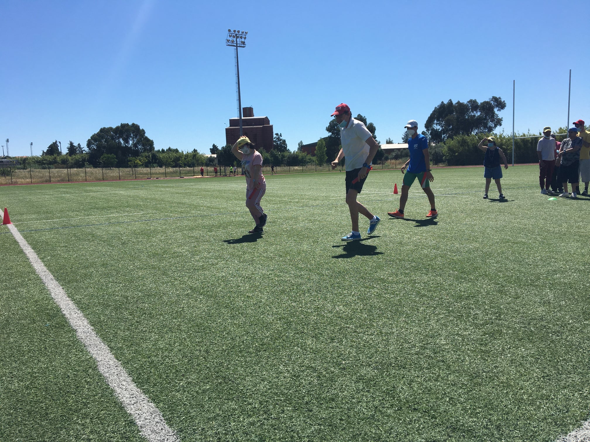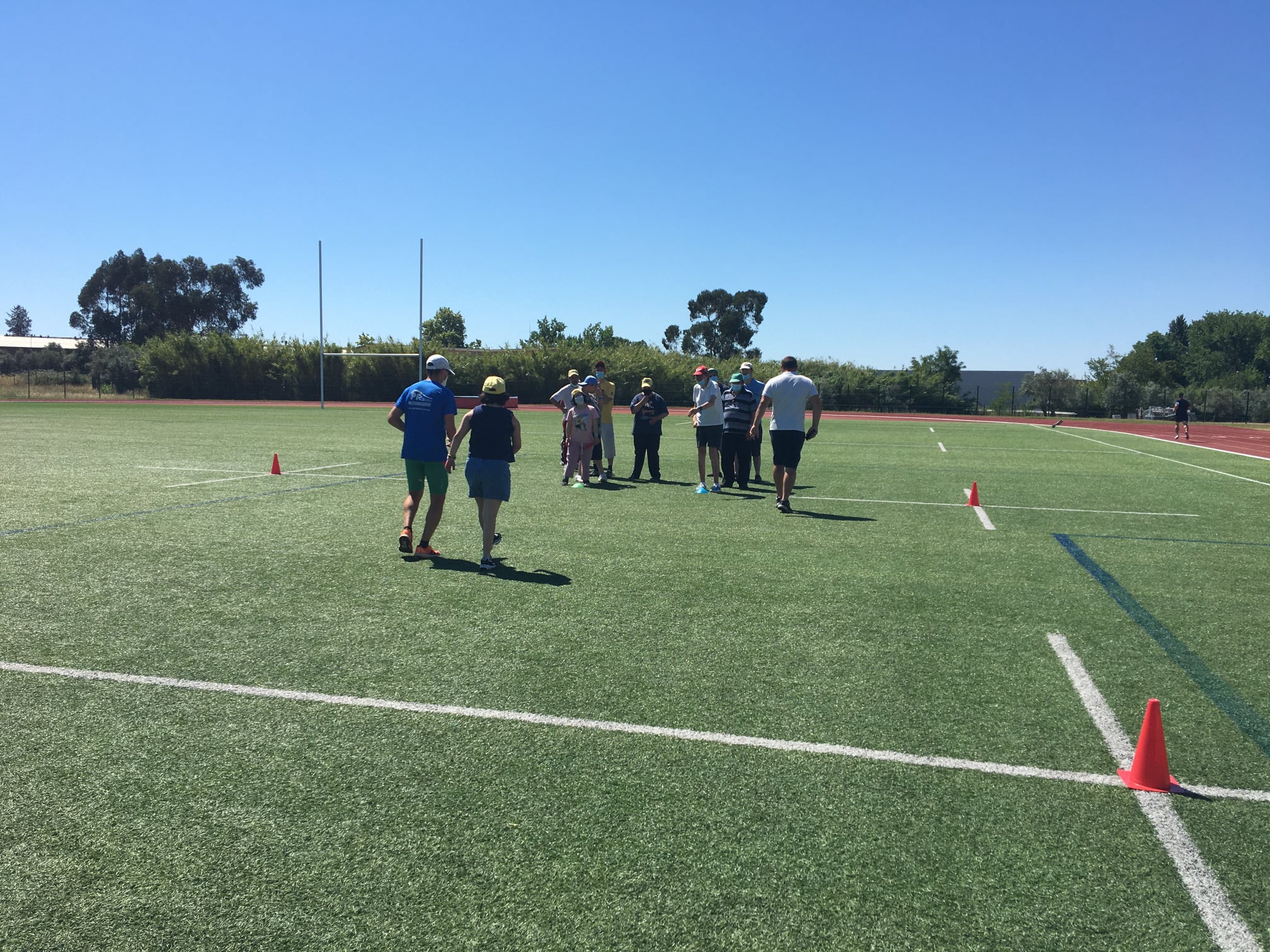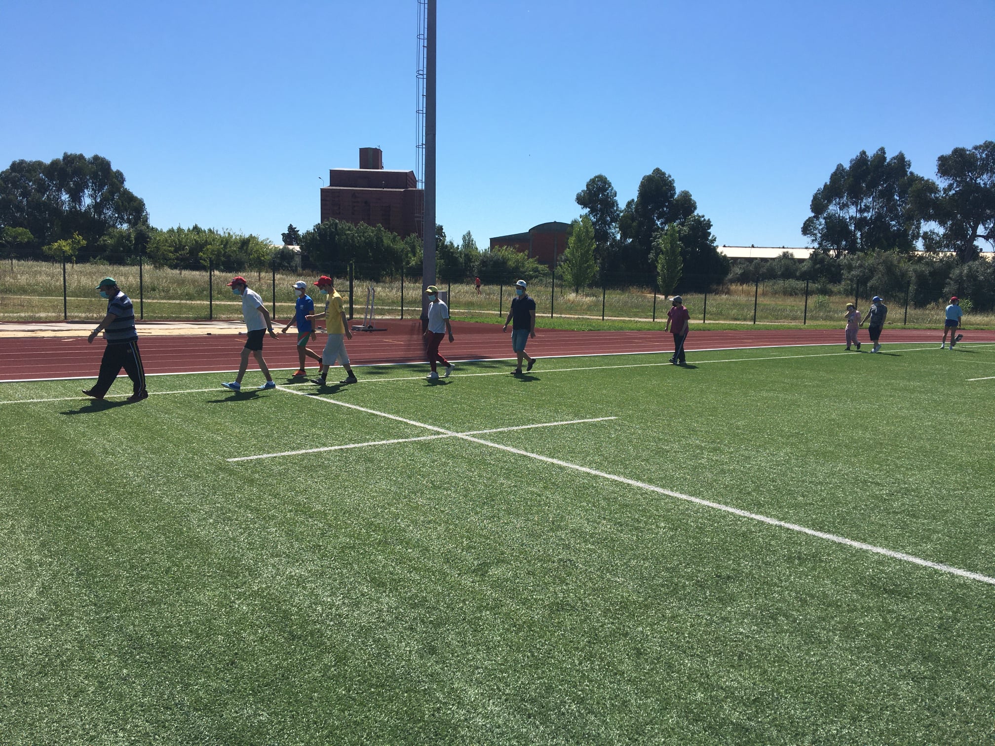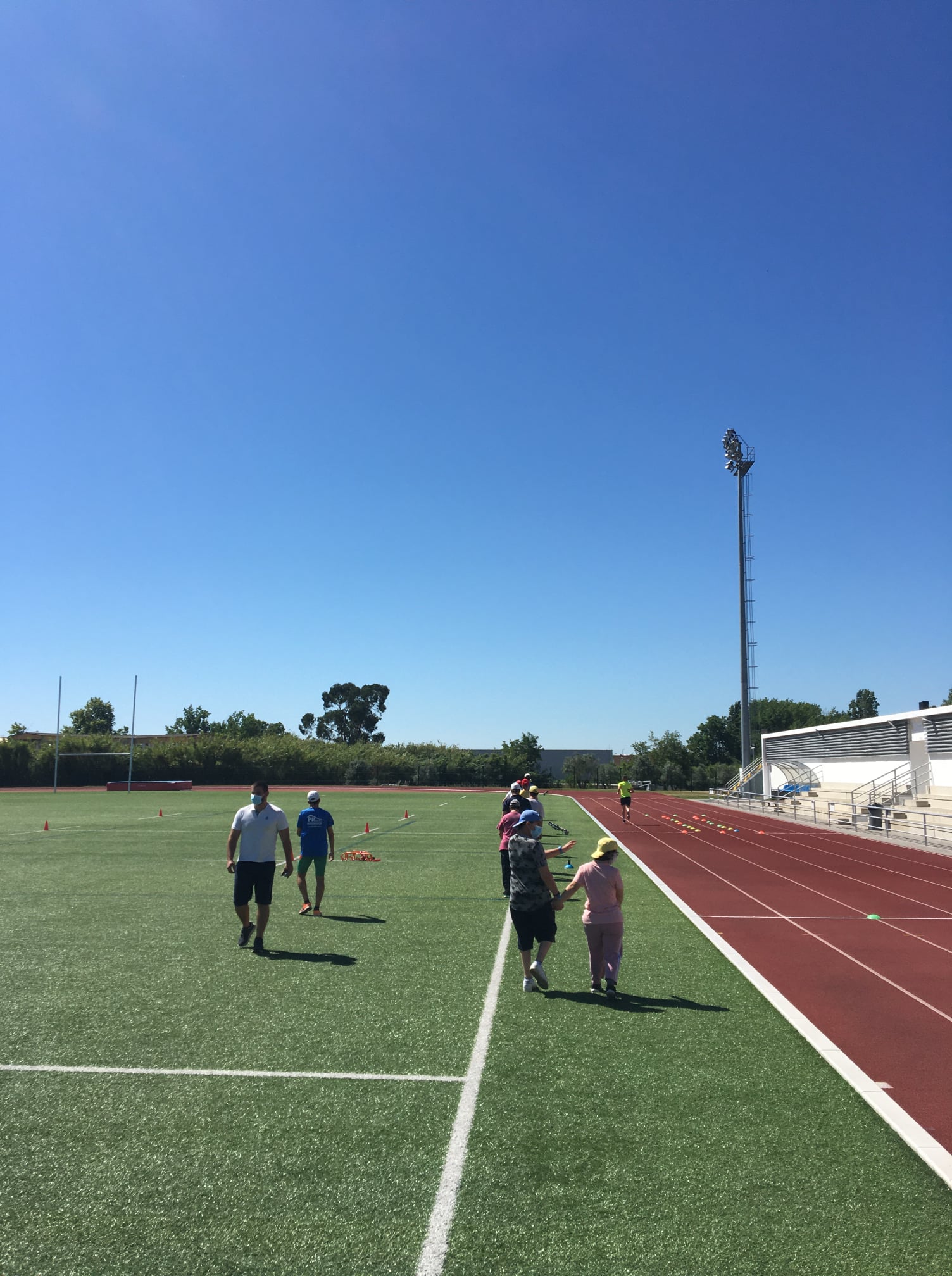 Durante a manhã fizeram uma caminhada pela pista, realizaram exercícios de mobilização articular, Técnica de Corrida e corrida de estafetas.